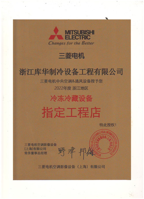 2022年度三菱電機(jī)冷凍機(jī)指定工程店--庫華制冷