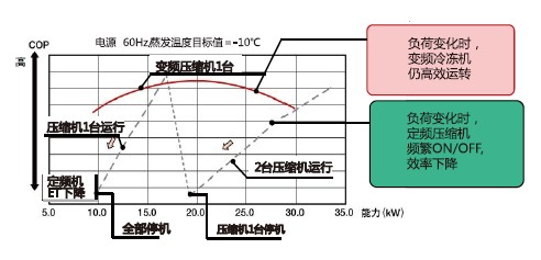 與交流變頻對(duì)比,直流變頻冷凍冷藏系統(tǒng)COP更高,更節(jié)能